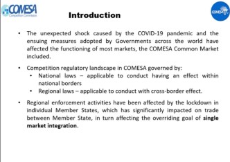 The COMESA Competition Commission (“CCC”) hosted a live webinar today on the impact of COVID-19 on merger regulation and enforcement within the common market in the COMESA region.  The seminar was aptly sub-titled “Challenges and Way Forward,” and the CCC representatives, in particular Dr. Willard Mwemba, did indeed lay out the problems faced by them and the measures proposed and taken to alleviate them.