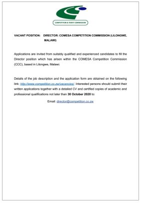 The COMESA Competition Commission has announced that it is accepting applications for the position of Director of the CCC until the end of October. Says Andreas Stargard, an antitrust practitioner with Primerio Ltd.: