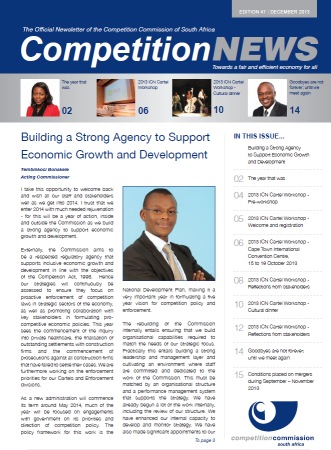 For those interested, the South African Competition Commission has published a piece largely consisting of the agency’s internal personnel news and photographs of “cultural dinners” & the like (even screenshots of related tweets?)…  One of the only substantive sections appears to be the half-pager on p.15 summarising “conditions placed on mergers during September-November 2013.”  Other than that, it’s picture time and a recapitulation of the ICN Cape Town event.